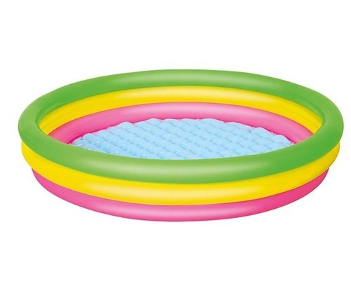 Basen Dmuchany Tęcza 152 cm x 30 cm Bestway 51103 Dmuchany Basen w ciekawej kolorystyce pozwoli zapewnić Twojemu dziecku ruch i zabawę w wodzie. Tęczowy basen zaprojektowany został , aby zachęcić dzieci do ruchu i dobrej zabawy na świeżym powietrzu, Dzięki swoim niewielkim wymiarom idealnie nadaje się dla dzieci w wieku od 2 lat. Jest łatwy do nadmuchania i opróżnienia dzięki czemu przechowywanie go nie będzie sprawiało problemów. Miękkie, nadmuchiwane podłoże zapewnia wygodne dla najmłodszych. W skład zestawu wchodzi: - basen 152 cm x 30 cm - łatka naprawcza Dane techniczne: - Wymiary basenu 152 cm x 30 cm - pojemność 211 litry - wiek od 2 lat - miękkie dno - tęczowa kolorystyka - trzy dmuchane pierścienie - miękkie dmuchane dno - wygodne ścianki służące jako oparcie Wymiary opakowania: 30 cm x 24 cm x 7 cm Waga: 2 kg