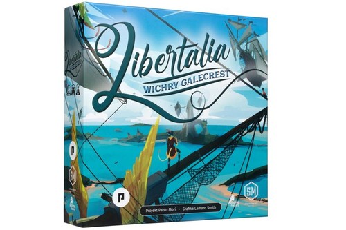 LIBERTALIA: WICHRY GALECREST W świecie Galecrest podniebni piraci postawili żagle, by wyruszyć z wiatrem w poszukiwaniu przygody, skarbów i sławy. Jako admirał obejmiesz dowodzenie nad nader liczną i charakterystyczną załogą, tak samo jak twoi przeciwnicy, dowodzący innymi statkami pirackiej floty. Każdego dnia twoja flota przybija do innej wyspy, na którą wysyłasz członka załogi, by zdobył dla ciebie część łupu. I masz nadzieję, że powróci, by powiększyć twoją kolekcję postaci. Libertalia pierwszy raz pojawiła się na rynku gier w roku 2012. Dziesięć lat później świętujemy ten oryginalny projekt, wydając poprawioną i rozszerzoną edycję, z nowymi grafikami, 40 postaciami na gracza, systemem reputacji do rozstrzygania remisów, odświeżonymi żetonami łupu, solidnym trybem solo i wieloma innymi dodatkami. Opis i cel gry: Gra w Libertalię składa się z trzech wypraw (rund). Przed każdą wyprawą gracze zyskują taki sam zestaw 6 postaci. Każdego dnia, podczas wyprawy, gracze jednocześnie wybierają 1 postać ze swojej ręki i zagrywają ją. Postaci układane są na wyspie zgodnie ze swoją rangą, od najniższej do najwyższej (remisy rozstrzyga reputacja gracza). Gracze aktywują zdolności dnia tych postaci w kolejności od najniższej rangi, następnie aktywują zdolności zmierzchu oraz wybór żetonów łupu w kolejności od najwyższej rangi, a postacie przechodzą na statki graczy. Na końcu aktywują się zdolności nocy postaci na statkach. Na koniec wyprawy gracze aktywują zdolności kotwicy postaci i zyskują ich żetony łupu oraz dublony. Następnie odrzucają te postaci, a także żetony łupu oraz dublony, pozostawiając jedynie niezagrane karty postaci na swojej ręce. Na koniec trzeciej wyprawy gracze ujawniają finalną punktację, by zdecydować, kto przejdzie do historii jako najbogatszy z piratów. Lista zmian w stosunku do pierwotnej wersji: Więcej postaci: Teraz postaci jest 40 zamiast 30 Zdolności żetonów: Każdy typ żetonu łupu posiada teraz odpowiadający mu dwustronny kafelek łupu, który określa zyski z żetonu. Losowane i zagrywane postaci: Gracz zaczyna z 6 postaciami na ręce i zagrywa 4 z nich podczas pierwszej wyprawy, następnie zyskuje 6 kolejnych postaci i zagrywa 5 z nich podczas drugiej wyprawy, aż wreszcie zyskuje kolejne 6 postaci i zagrywa 6 z nich podczas trzeciej wyprawy. Reputacja: Prosty tor reputacji zastąpił wcześniejsze zasady rozstrzygania remisów. Informacje ukryte i jawne: Kafelki łupu są teraz dwustronne, przez co łatwiej przygotować grę, ale trudniej je ukryć – teraz są one jawne przez całą grę. Każdy gracz liczy zgromadzone bogactwo za pomocą tarczy punktacji, która zastąpiła planszę w oryginalnej grze (nadal jest to informacja jawna). Stos kart odrzuconych (cmentarz): Każdy gracz posiada teraz własny cmentarz, na który odkłada postaci odrzucone podczas wyprawy i na koniec wyprawy. Wariant dla 2 graczy: dzięki kafelkowi Kadeta, który daje dodatkowy wybór jednemu z graczy, gra jest teraz bardziej zbliżona do gry dla 3 graczy (bez wykorzystania bota). Tryb solo: Z pomocą Automy możliwe jest teraz rozgrywanie Libertalii jako gry jednoosobowej. Projekt: Paolo Mori Grafika: Lamaro Smith 1-6 graczy 45-60 minut Wiek: 14+ Zawartość pudełka: 48 żetonów łupu 1 woreczek 7 kafelków łupu 240 kart postaci (63x88mm, 40 na gracza) 1 kafelek kadeta (tryb dla 2 graczy) 6 drewnianych znaczników reputacji 54 dublony (kartonowe monety) 1 pudełko na skarby z pokrywką 6 kafelków cmentarza 6 tarcz punktacji 39 kart trybu solo Automy (63x88mm) 1 karta pomocy Automy (63x88mm) 4 zastępcze kafelki łupu Automy 1 dedykowana wypraska (mieszcząca karty w koszulkach i bez)
