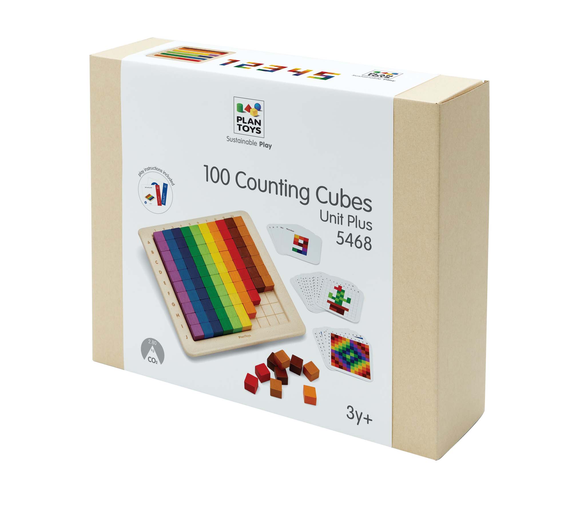 Dzięki planszy i 100 kolorowym kostkom dziecko uczy się liczyć w zakresie stu, rozwija umiejętność sortowania i sekwencjonowania.