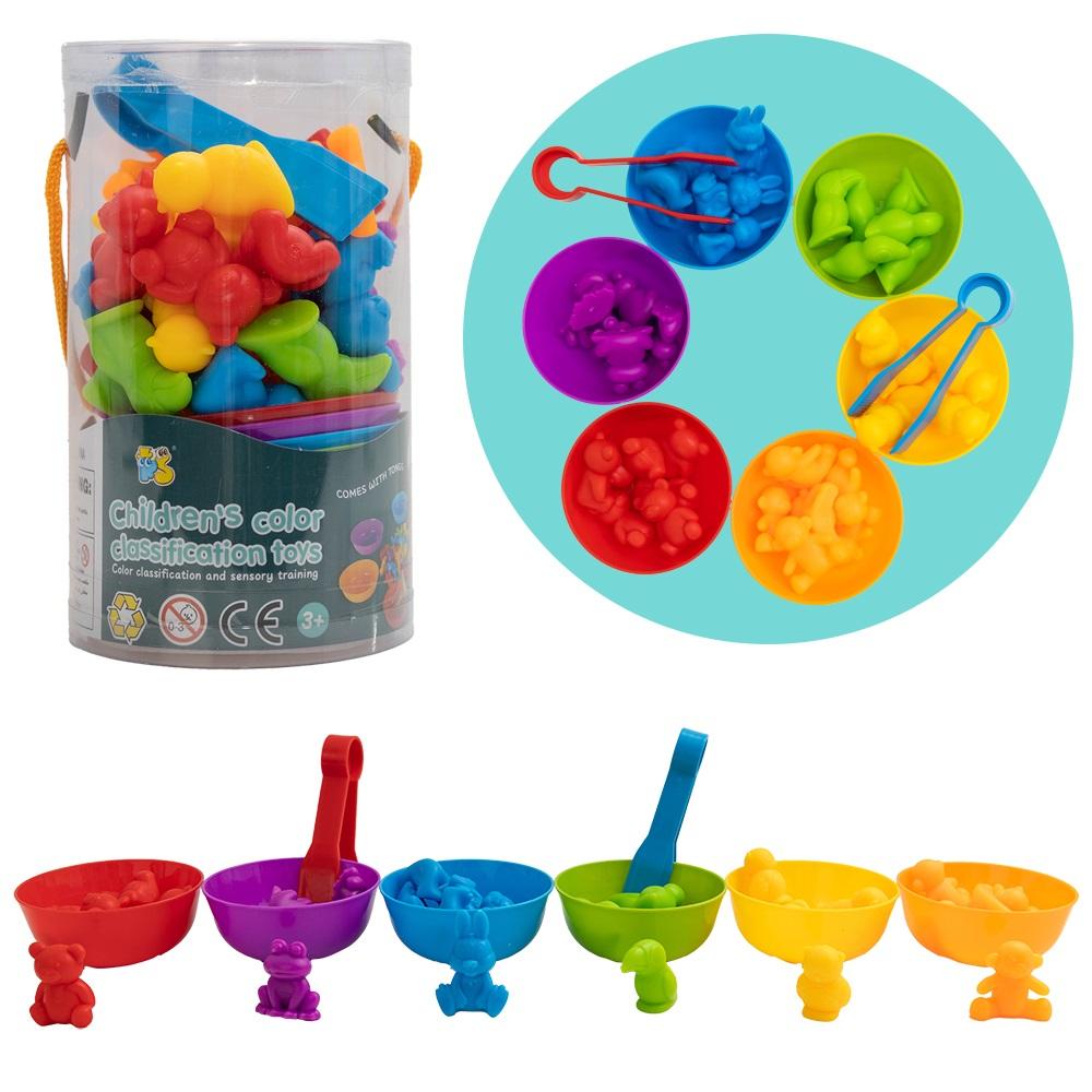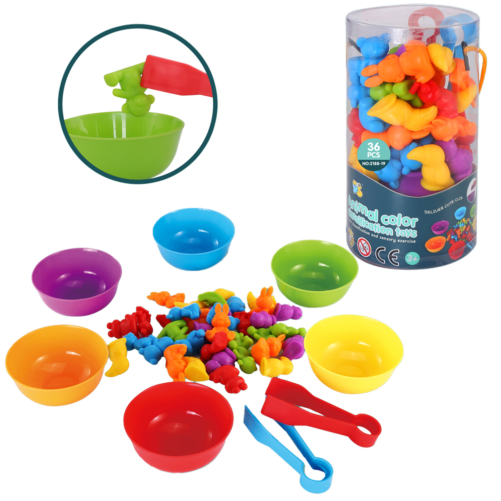 Liczmany gumowe to doskonały zestaw edukacyjny, który pomoże Twojemu dziecku opanować podstawy liczenia oraz sortowania według kolorów. Zestaw zawiera 36 kolorowych figurek w sześciu barwach, sześć pasujących miseczek oraz dwie plastikowe pęsety, które wspierają rozwój koordynacji ręka-oko. Dzięki różnorodnym elementom dziecko uczy się rozpoznawania kolorów, liczenia i porządkowania przedmiotów, jednocześnie rozwijając umiejętności manualne. Figurki mają wysokość 3 centymetrów - idealną dla małych rączek. Wymiary opakowania: 17 x 9 x 9 cm