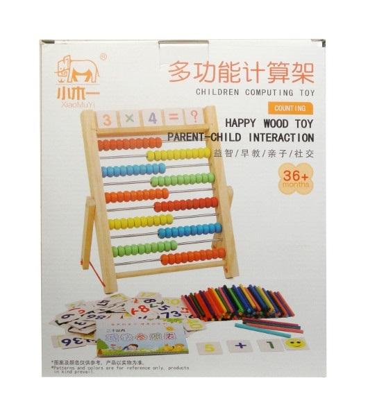 Drewniane liczydło z kolorowymi kulkami oraz tabliczkami z cyferkami. Liczydło umożliwia naukę podstawowych funkcji matematycznych (dodawanie, odejmowanie,mnożenie i dzielenie) w zakresie do 100. W liczydle znajduje się również półeczka na kartonowe tabliczki aby wykonywać działania matematyczne. Całość spakowana w kartonowe opakowanie. Produkt przeznaczony dla osób powyżej 3 lat. Podane wymiary są wymiarami opakowania.