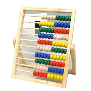 Liczydło drewniane z podpórką, 10 rzędów po 10 kolorowych koralików.