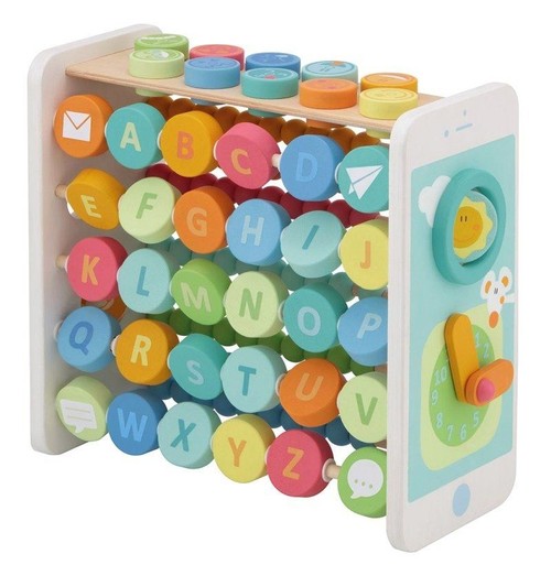 Ta zabawka edukacyjna przeznaczona jest dla dzieci w wieku przedszkolnym i wczesnoszkolnym. Jest prezentem, który pozwoli przybliżyć, to, co dzieci spotkają w szkole. Liczydło wraz z alfabetem to estetycznie wykonana, drewniana zabawka w żywych kolorach. Przyciągnie uwagę nie tylko dzieci, ale i dorosłych. Po stronie alfabetu dzieci mają także możliwość poznać nazwy zwierząt w języku angielskim. Jest to możliwe, dzięki przypasowaniu ich nazw i wyglądu do każdej litery abecadła. Dodatkowo na bokach zabawki umieszczono dodatkowe pomoce naukowe. To zegar z ruchowymi wskazówkami, dzięki któremu dziecko szybko nauczy się odczytywać godzinę oraz trzy pokrętła, które obracane paluszkami, ćwiczą motorykę dłoni. Wiek 3+