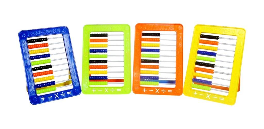 Kolorowe liczydło z podstawką i kolorowymi kulkami. Umożliwia naukę podstawych funkcji matematycznych (dodawanie, odejmowanie,mnożenie i dzielenie) w zakresie do 100. Produkt występuje w kilku wersjach kolorystycznych, wybierany losowo. Cena dotyczy jednej sztuki. Zabawka zapakowana w przeroczysty worek. Podane wymiary są wymiarami produktu w opakowaniu. Produkt dla dzieci od 3 lat.