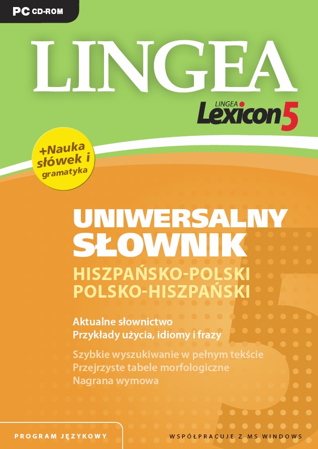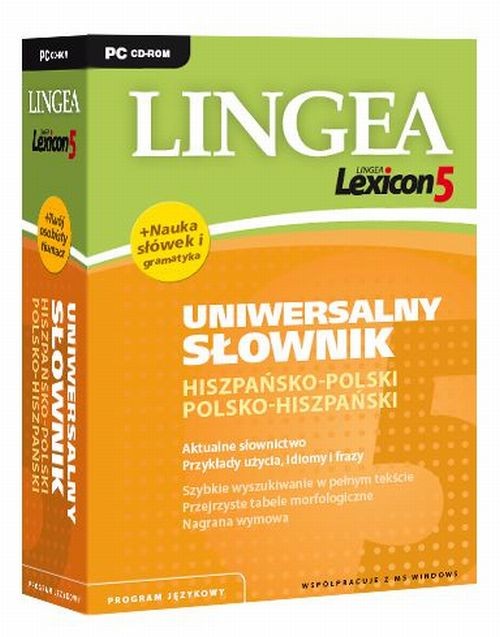 Lingea Lexicon 5 Uniwersalny słownik hiszpańsko-polski i polsko-hiszpański zawiera około 40 000 haseł, liczne przykłady, związki frazeologiczne oraz tabele odmian. Umożliwia odsłuchanie prawidłowej wymowy, zawiera zarys gramatyki, słownik użytkownika i rozbudowany słownik tematyczny. Lexicon 5 doskonale sprawdzi się w instytucjach szkolnych, państwowych oraz w firmach. Przejrzyste wyświetlanie haseł Tłumaczenia wyświetlane są bardzo przejrzyście - kolorami zostały wyróżnione hasła główne, części mowy, rodzaje gramatyczne, przykłady rekcji czasowników oraz uwagi gramatyczne. Dla większej wygody, wszystkie powyższe informacje są wyróżnione czcionką i odpowiednio dobranymi kolorami. Odsyłacze W lewym oknie programu są wyświetlane odsyłacze do słów powiązanych z hasłem głównym, na przykład synonimy, antonimy, przedrostki czy wyrazy pochodne. Pozwala to nam na poszerzenie słownictwa i znalezienie najbardziej odpowiedniego tłumaczenia. Wyszukiwanie w obu kierunkach W odróżnieniu od większości słowników na rynku, w programie Lexicon nie jest konieczne wybieranie kierunku tłumaczenia. Aplikacja sama rozpoznaje język do którego należy dane słowo i wyświetla tłumaczenie. W przypadku wyrazów występujących w tej samej formie w obu językach, program automatycznie wyświetla tłumaczenie w obu językach. Wyszukiwanie w dowolnej formie gramatycznej Słowo można wkleić z innej aplikacji w dokładnie takiej formie, w jakiej jest ono tam podane - niezależnie od przypadka lub czasu słownik odnajdzie szukany wyraz w formie podstawowej. Wyszukiwanie według wzorca Lexicon umożliwia wyszukiwanie słów z użyciem znaków specjalnych – np. znak * umożliwia zastąpienie dowolnych liter w wyszukiwanym słowie – słownik wyszuka najbardziej odpowiednie wyrazy. Mouse-over Najwygodniejszym i najłatwiejszym sposobem wyszukiwania jest wykorzystanie funkcji mouse-over. Wystarczy tylko najechać kursorem na nieznany wyraz znajdujący się w oknie innego programu, a w oknie słownika od razu pokaże się jego tłumaczenie. Lexicon współpracuje m. in. z takimi znanymi aplikacjami jak MS Word, Internet Explorer, Mozilla Firefox, Adobe Acrobat oraz GaduGadu. Nagrana wymowa Słownik zawiera zapis dźwiękowy wymowy nagrany przez native-speakera w jakości audio CD. Tabele odmian Zawierają przegląd wszystkich form gramatycznych danego wyrazu, szczegółowe informacje na temat odmiany czasowników, rzeczowników, stopniowania przymiotników itp. Dodatkowo znajdują się w nich nazwy poszczególnych czasów, informacje o typach zaimków i liczebników oraz o rodzajach rzeczowników. W przypadku czasowników wyświetlają się wszystkie formy w zależności od czasu, trybu i strony, wraz z zaimkami osobowymi i słowami posiłkowymi. Nauka Za pomocą Lexiconu można uczyć się nowych słów – pogrupowanych na wiele kategorii min.: pory roku, kolory, gryzonie, literatura i wiele innych. Funkcja ta pozwala na automatyczne powtarzanie wyrazów z danej kategorii. Możemy sprawdzić swoją wiedzę, korzystając ze specjalnie przygotowanych ćwiczeń, umożliwiających powtarzanie wyrazów z wybranej przez nas dziedziny. MC Windows 98/ME/NT/XP/Vista Program wymaga od 120 do 700MB wolnego miejsca na dysku