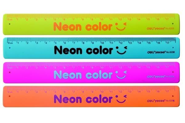 Linijka o długości 18 cm. Dostępna w 4 neonowych kolorach. Wyróżnia się dużą elastycznością. Idealnie przylega do powierzchni i nie ślizga się po papierze. Posiada funkcję zamykania po zgięciu, linijka może służyć jako użyteczna opaska na długopisy lub inne akcesoria do pisania. Mix kolorów, kolor wysyłany losowo.