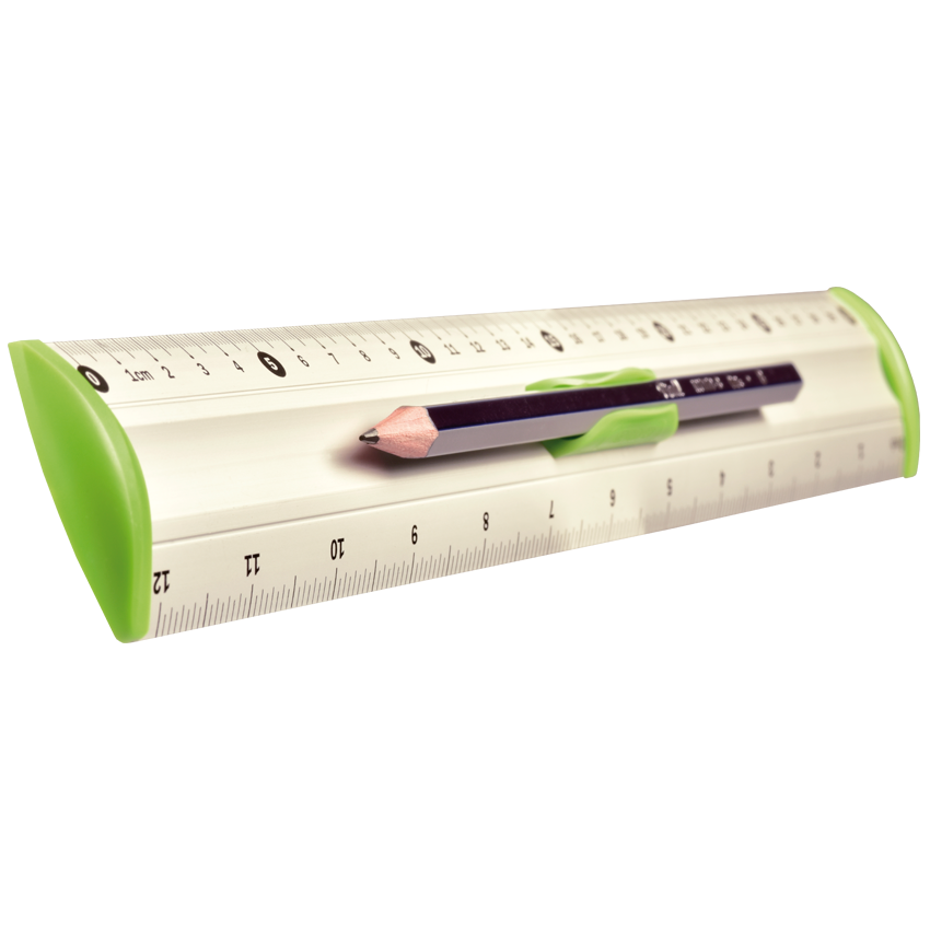 Linijka wykonana z aluminium ze skalą po dwóch stronach. Posiada wygodny uchwyt na ołówek.