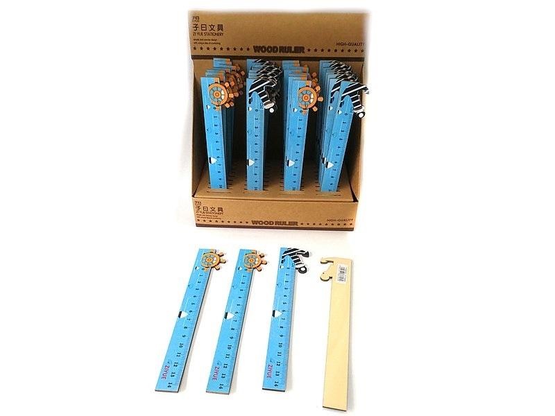 Linijka drewniana, z motywem morskim, dł.18cm.
