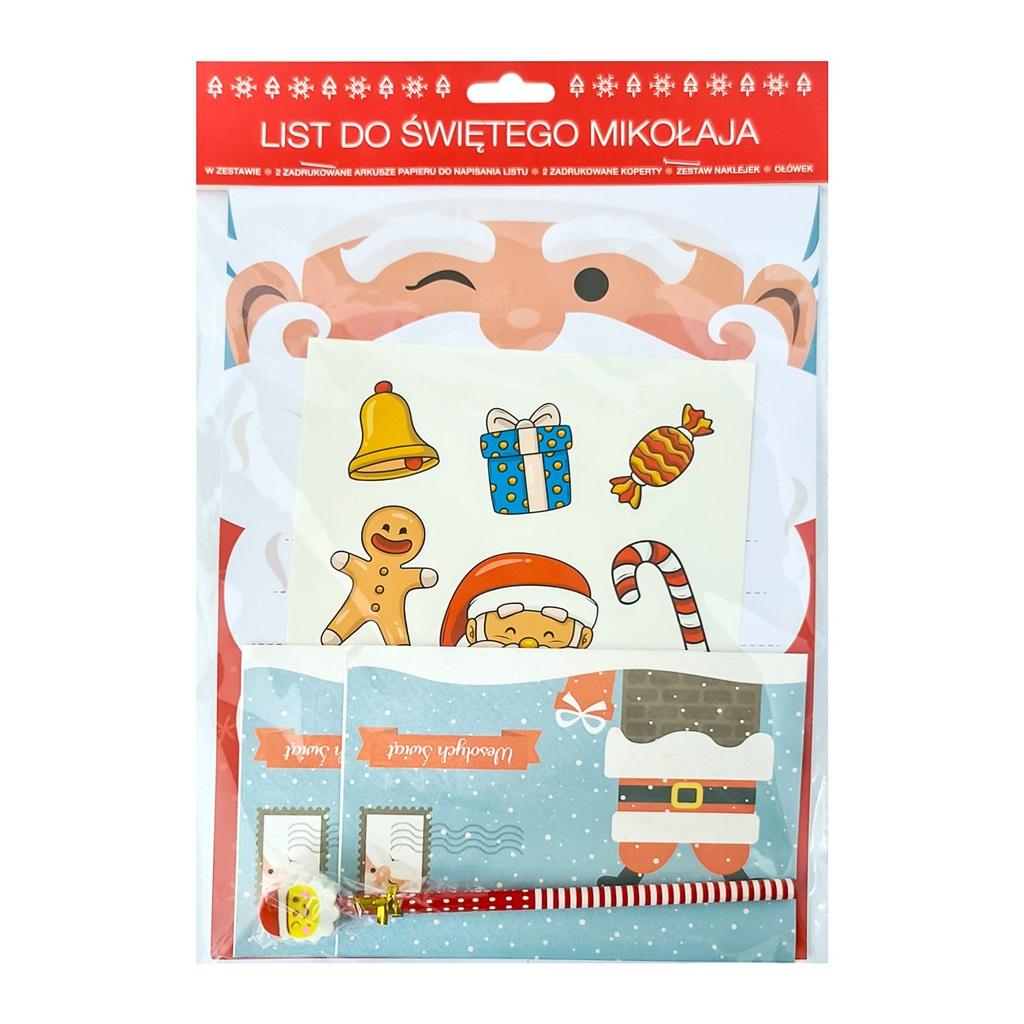 W skład zestawu wchodzą: 2 zadrukowane arkusze papieru do napisania listu, 2 zadrukowana koperty, zestaw naklejek, ołówek.