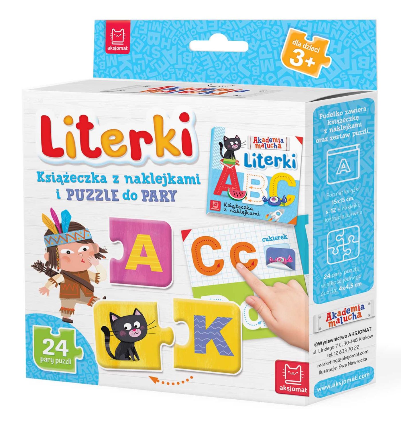 LITERKI KSIĄŻECZKA Z NAKLEJKAMI I PUZZLE DO PARY