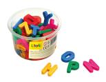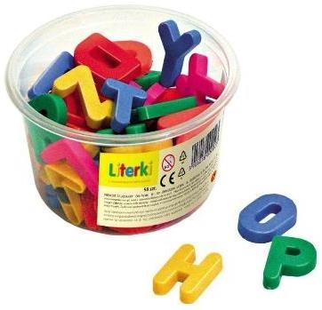 Zbiór 60 sztuk literek z magnesami, które możesz przyczepiać na lodówkę czy tablicę magnetyczną.