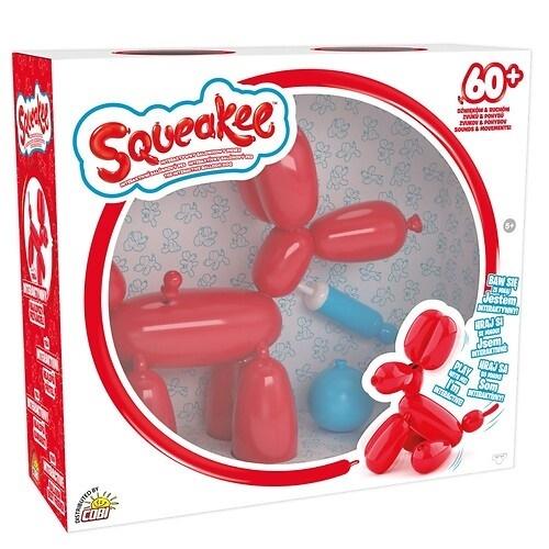 Innowacyjny, interaktywny Piesek. Wydaje dźwięki, zachowuje się, jakby był pieskiem z balonika, a jest w pełni interaktywnym pieskiem, stworzonym z wykorzystaniem najnowszej technologii. Ma ponad 60 dźwięków i ruchów. Reaguje na dotyk, dzięki 10 czujnikom. Można przekłuć go jego pinezką, wtedy zachowa się, jakby wypuszczał powietrze i się położy. Aby wstał, należy go napompować. Można go także nakarmić za pomocą jego pompki. Po karmieniu Piesek zrobi siusiu lub puści bączka. Siada, prosi. Gdy pogłaszcze się go po łebku, usiądzie. Gdy pogłaszcze się go po brzuszku, jak prawdziwy piesek, okaże zadowolenie. Można go trenować, przy użyciu jego piłeczki, aby wykonywał swoje trzy ulubione sztuczki. Staje się bardziej interaktywny, gdy się nim dziecko dłużej bawi. Emocjonalnie reaguje na głos gdy się powie do niego głośniej piesek zaskomli. Squeakee uwielbia zabawę, dlatego chętnie zwraca na siebie uwagę, podobnie jak robią to prawdziwe pieski. Gdy Squeakee śpi, znów naśladuje zachowania prawdziwych piesków, ruszając łapkami, jakby biegł przez sen lub poszczekując.