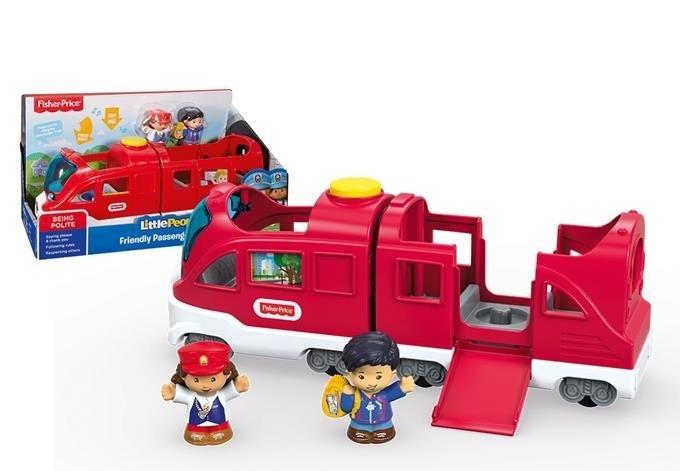 Pociąg jest wyposażony w prawdziwe światła i wydaje realistyczne dźwięki. Maluchy będą świetnie się bawić do wspólnej podróży zapraszają przyjaciele Little People(R): Koby i Konduktorka Kasia! Po wciśnięciu siedzenia zajmowanego przez Konduktorkę Kasię dzieci usłyszą wypowiedzi i piosenki o przestrzeganiu zasad i szanowaniu innych. Gotowi na przygodę? Dzieci wciskają żółty przycisk, aby aktywować okienko i usłyszeć jeszcze więcej piosenek, dźwięków i wypowiedzi! Interaktywny pociąg Little People(R) zabierze Twoją pociechę we wspaniałą edukacyjną podróż.