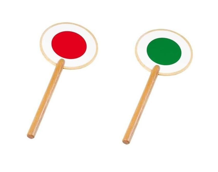 Dwustronny lizak do zabawy w policjanta. Kolor czerwony nakazuje pojazdom zatrzymanie się, a zielony zezwala na jazdę. Wiek: 3+