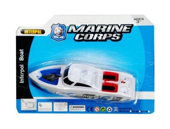 Plastikowa łódka do zabawy dla dzieci. Produkt zapakowany w kartonową podstawkę z przezroczystym kloszem. Zabawka dla dzieci od 3 lat. Podane wymiary stanowią wymiar opakowania. Zabawka działa na baterie typu AA. Baterie nie załączone. Produkt występuje w kilku wersjach kolorystycznych, wybierany losowo. Cena dotyczy jednej sztuki.