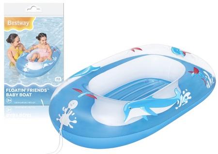 Dmuchana Łódka Niebieska 102 x 69 cm Bestway 34037 Jeżeli Twoje dziecko uwielbia spędzać czas w wodzie, bądź dopiero oswaja się z wodą, zaopatrz je w pontonik do pływania. Ponton jest lekki i poręczny po złożeniu nie zajmuje dużo miejsca przez co z łatwością będzie można go przetransportować. Ciekawa kolorowa grafika dodatkowo zachęci Twoje dziecko do zabawy w wodzie. Ponton przeznaczony jest dla dzieci w wieku od 3 do 6 roku życia. Dodatkowy atutem jest miękki oparcie i dmuchane dno, które zapewnią, że maluch będzie czuł się komfortowo. Łódka wykonana jest z wytrzymałego winylu odpornego na uszkodzenia. Główne cechy: - wymiary 102 cm x 69 cm - kolorowa grafika z delfinkiem - wytrzymały materiał PVC - maksymalne obciążenie: 45kg - przeznaczone dla dzieci w wieku od 3 do 6 lat Waga: 0,6 kg Wymiary opakowania: 25 cm x 16 cm x 5 cm