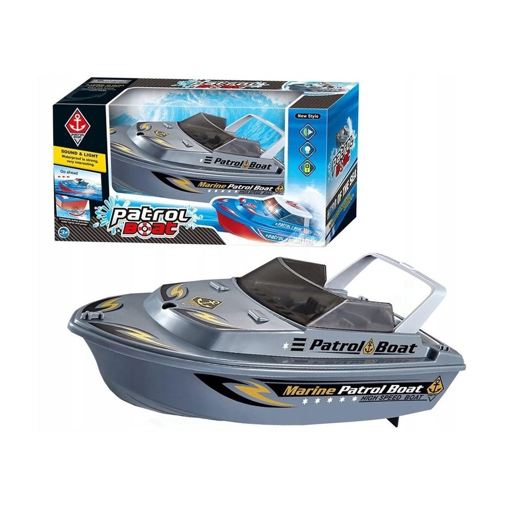 W ZESTAWIE: ŁÓDKA 21 CM; FUNKCJE: PŁYWA PO WODZIE, DŹWIĘK PRACY SILNIKA; BATERIE: 3 X AA 1,5V, BRAK W ZESTAWIE, 3+