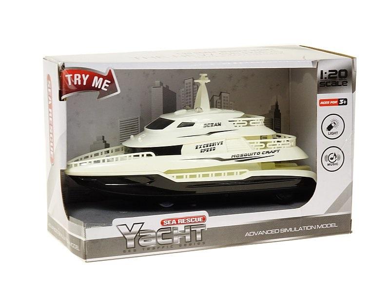łódka 1:20, na baterie, jeździ, światło, muzyka; 22,5x14x9,5cm, W/B