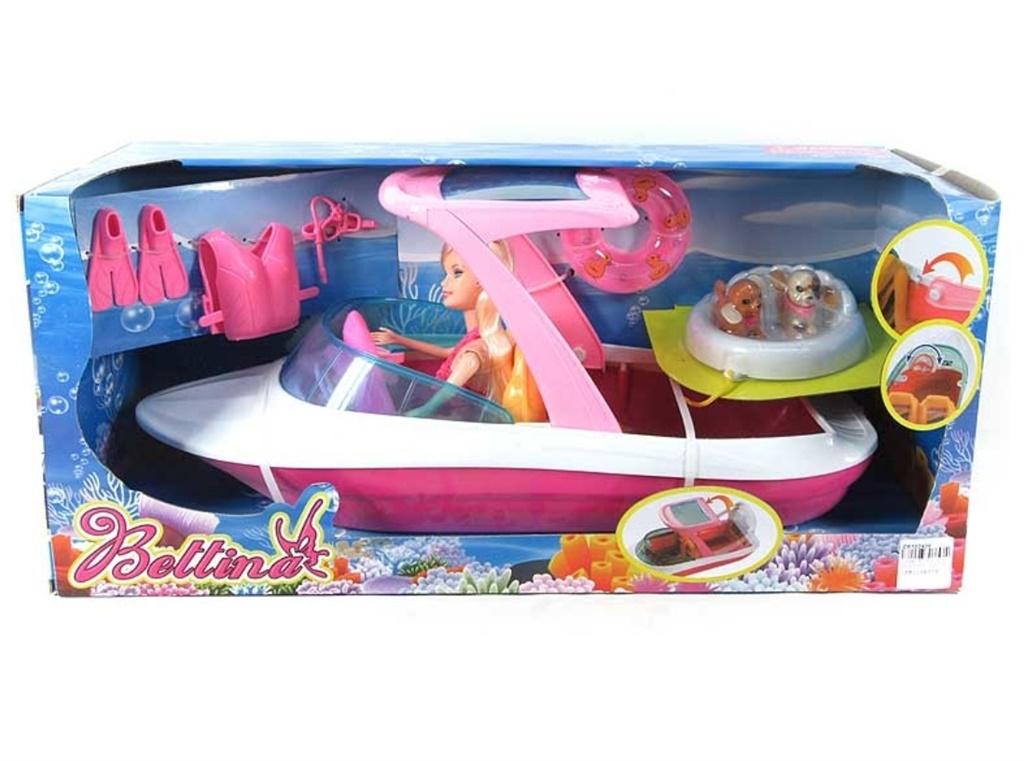 Duża plastikowa motorówką w komplecie z lalką i akcesoriami. Dla dzieci w wieku od 3 lat.