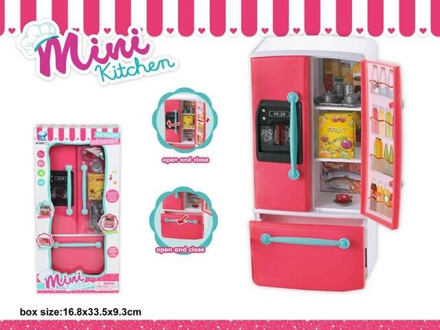 Lodówka dla lalki 30 cm. Z funkcją światła i dźwięku. Dodatkowe akcesoria: kubek, kostki lodu, 2 talerzyki, sok. Produkt zawiera baterie 3x"AAA". Zabawka przeznaczona dla dzieci powyżej 3 roku życia.