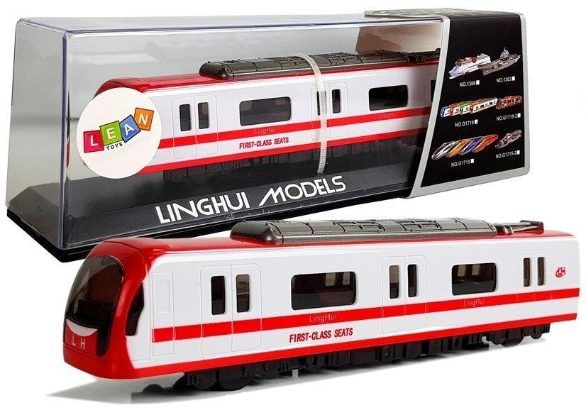 Pociąg Kolejka z Naciągiem Czerwony Dźwięk i Światła Każdego małego odkrywce interesują lokomotywy i samochodzik. Przedstawiamy idealnie odwzorowany pociąg pierwszej klasy. Dziecko, jak tylko podpowie mu wyobraźnia, może się nią bawić lub stworzyć swoją nową kolekcję. Opakowanie ma przezroczystą, plastikową witrynkę, dlatego postawiony na półce zrobi wrażenie. Posiada efekty świetlne i dźwiękowe. Pociąg wydaje odgłosy realistycznej jazdy co pozwoli maluchowi wyobrazić sobie, jakby to on był maszynistą tego miniaturowego pociągu, przemierzając długie trasy ze swoimi pasażerami. Pociąg jest utrzymany w kolorystyce czerwono- białej. Posiada napęd frykcyjny, wystarczy nacisnąć, pociągnąć do tyłu, puścić i obserwować jak mknie w przód. Wymiary pociągu 23 cm x 4 cm x 6 cm Wymiary opakowania: 30 cm x 8 cm x 10 cm Pociąg przeznaczony jest dla dzieci powyżej 3. roku życia. Zabawka posiada certyfikat CE i jest zgodna z normą EN 71. Zasilana dwoma bateriami 1,5V AA, brak w zestawie.