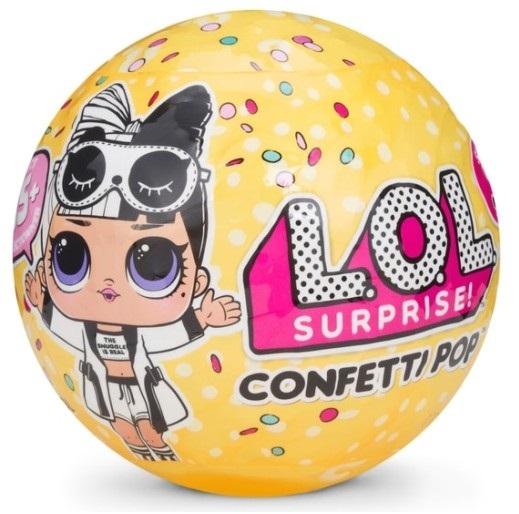 L.O.L. Confetti Niespodzianka! Odkryj 9 zaskakujących warst! Jaka niespodzianka będzie następna? Buty, ubranko, lalka? To tajemnica! Gdy znajdziesz wstążkę, naciśnij przycisk z confetti!