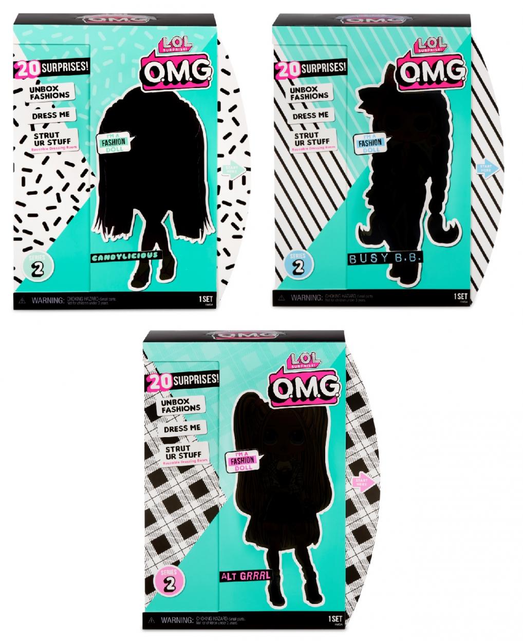Otwórz 20 niesamowitych niespodzianek! Nowe lalki L.O.L. Surprise OMG mają piękne włosy i własny fantastyczny styl! Zbierz wszystkie lalki OMG. Karton może służyć jako garderoba i przebieralnia. W zestawie stojak na lalkę i inne akcesoria modowe.