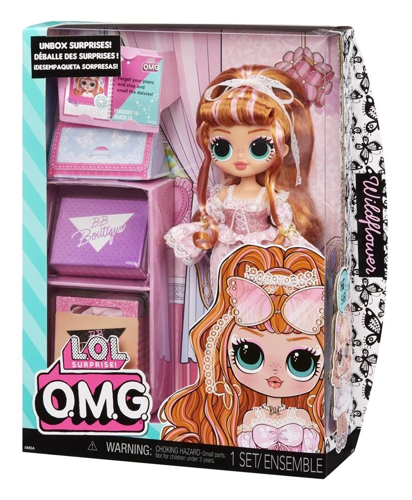 Lalka LOL OMG Wildflower zapomnij o planach, zatrzymaj się i wąchaj stokrotki! Romantyczna Wildflower nigdy nie przestanie wyrażać swojej miłości do motyli, kwiatów i koloru różowego. Zresztą, spójrz na jej strój! Dzwony i gorset zdobią koronki, wstążeczki i kwieciste wzory. Och!