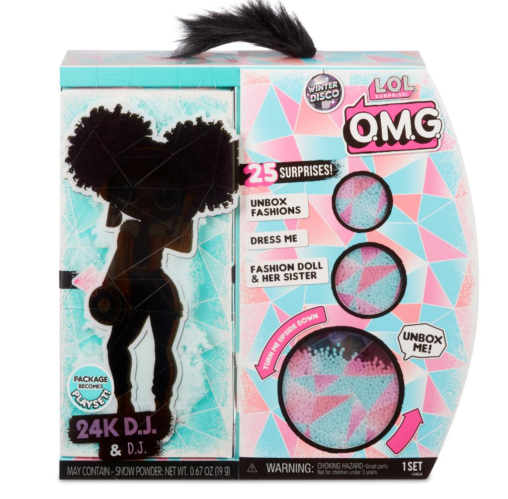 Otwórz ponad 25 niespodzianek! Lalki L.O.L. Surprise OMG z serii Winter Disco z mniejszymi siostrami! Zbierz wszystkie lalki OMG! Karton może służyć jako garderoba i przebieralnia. W zestawie stojak na lalkę i inne akcesoria modowe.