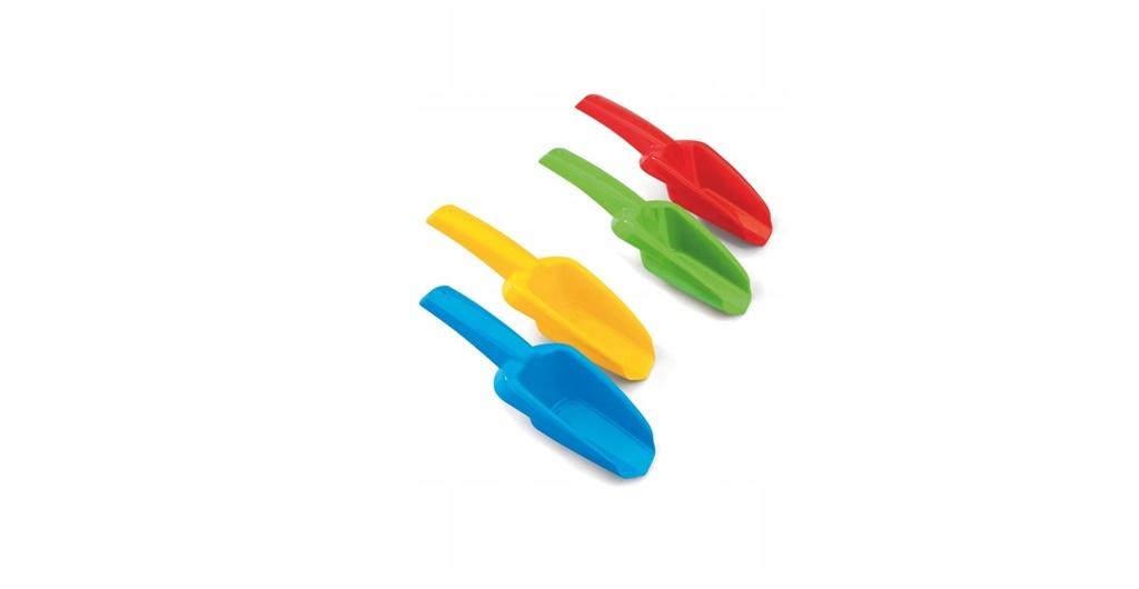 Wykonana z błyszczącego plastiku o żywych kolorach (niebieski, żółty, zielony, czerwony).