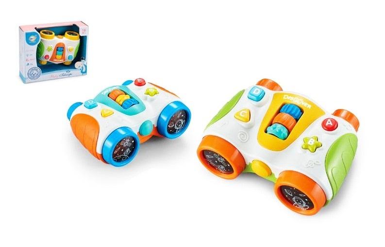 Mała lornetka dla wszystkich najmłodszych dzieci ciekawych świata. Lornetka posiada ruchome elementy i przyciski funkcyjne. Wydaje dźwięki, gra melodie i świeci kolorowym światełkiem. Zabawka działa na baterie typu AA. Baterie nie są załączone do zabawki. Produkt występuje w kilku wersjach kolorystycznych, wybierany losowo. Cena dotyczy jednej sztuki. Podane wymiary stanowią wymiar opakowania. Zabawka przeznaczona dla dzieci od 18 miesiąca życia. Zabawka zapakowana w kartonowe opakowanie.