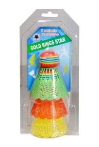 Zestaw kolorowych, plastikowych lotek do badmingtona. 3 szt. Produkt zapakowany w przezroczyste, plastikowe opakowanie. Produkt dla osób od 3 lat. Podane wymiary stanowią wymiar opakowania.