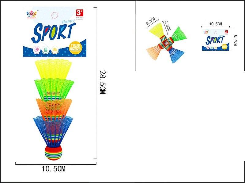 Zestaw 4 lotek do badmintona, palstikowe, kolorowe; 28,5x10,5x8,5cm,