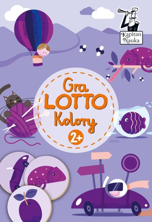 Gdzie ukrył się fioletowy kameleon? Czy to lew z pomarańczową grzywą wygląda z nory? Kto pierwszy położy wszystkie żetony w odpowiednich miejscach na planszy, niech krzyknie: „lotto”! Niezwykle proste zasady gry, która polega na wyszukiwaniu szczegółów i dopasowaniu obrazka na żetonie do odpowiedniego miejsca na planszy. „Lotto” rozwija spostrzegawczość, koncentrację, precyzję i koordynację wzrokowo-ruchową, a także umiejętność rozpoznawania i nazywania kolorów. 6 bajecznie kolorowych plansz oraz 36 okrągłych żetonów to propozycja idealnej zabawy dla najmłodszych dzieci. Cztery warianty rodzinnej rozgrywki zachęcą do gry również starsze dzieci i będą okazją do doskonalenia umiejętności porządkowania i grupowania obiektów na żetonach, a także rozwijania pamięci wzrokowej. Trwałe, wykonane z grubej tektury elementy są idealne już dla dwulatków, a zabawa w przyporządkowywanie kolorowych żetonów do dużych ilustracji na planszach dostarczy dzieciom wiele radości, ćwicząc przy tym motorykę małą i umiejętność rozpoznawania kształtów. Do współpracy z Kapitanem Nauką zostali zaproszeni utalentowani polscy ilustratorzy. To właśnie ich fascynujące grafiki pobudzają dziecięcą wyobraźnię i zapraszają do wspólnego spędzania wolnego czasu. Wyjątkowe ilustracje przygotowane przez Jakuba Haremzę do gry „Lotto Kolory 2+” przedstawiają przygody niezwykle ciekawych i przyjaznych bohaterów, którzy inspirują do nauki kolorów i dostrzegania ich w najbliższym otoczeniu dziecka. Gra „Lotto Kolory 2+” została wyprodukowana w Polsce, z najwyższą starannością i troską o bezpieczeństwo najmłodszych.