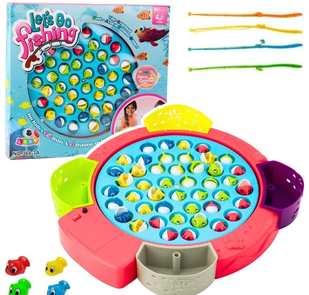 INTERAKTYWNA GRA ZRĘCZNOŚCIOWA - ŁOWIENIE RYB Wspaniała, interaktywna gra zręcznościowa zapewni Twoim dzieciom godziny pełne radości i aktywnej zabawy! Obracająca się plansza z otwierającymi pyszczki rybkami to prawdziwe wyzwanie dla refleksu i precyzji. Wystarczy wybrać kolor wędki i starać się złapać jak najwięcej rybek w odpowiednim momencie - to świetna rozrywka dla dzieci i dorosłych. Zabawa wspiera rozwój motoryki małej, koncentracji i koordynacji wzrokowo-ruchowej. Gra została zaprojektowana z myślą o bezpieczeństwie najmłodszych - wszystkie elementy są zaokrąglone i dopasowane do dziecięcych rączek. Dzięki kompaktowym wymiarom i prostemu montażowi, zestaw można zabrać wszędzie - idealny na wspólne chwile z rodziną i przyjaciółmi. Zabawka zapakowana jest w estetyczne pudełko, co czyni ją również doskonałym pomysłem na prezent. SPECYFIKACJA: Wymiary planszy: 33 x 5 x 30,5 cm Materiał: tworzywo sztuczne Zasilanie: 3 baterie AA 1,5V (brak w zestawie) Ilość rybek: 45 sztuk w 4 kolorach Rodzaje wędek: 4 długie + 4 krótkie (różne kolory) Elementy dodatkowe: 4 kolorowe koszyczki Funkcje: obracająca się plansza, rybki otwierają pyszczki ZAWARTOŚĆ ZESTAWU: 4 kolorowe długie wędki 4 kolorowe krótkie wędki plansza do gry 45 rybek (czerwone, granatowe, zielone, żółte) 4 kolorowe koszyczki