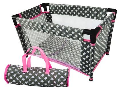 Łóżeczko w Gwiazdki dla Lalek Alice Szaro Różowe Łóżeczko dla lalek to prześliczne akcesoria do zabawy, który spodoba się każdej dziewczynce. Teraz lalka Twojej pociechy ma własny kąt i miejsce, gdzie może spać jej lalka. Dzięki siateczkowym bokom łóżeczka może obserwować co dzieje się z lalką i bacznie czuwać. Stelaż wykonany jest z aluminiowym rurek z łączeniami z plastiku w kolorze czarnym. Do zestawu dołączona jest kołderka oraz poduszeczka. Całość łóżeczka i elementów jest w kolorze szarym z białymi gwiazdkami z elementami różu. Łatwo można go zdemontować i przechowywać w przenośnej torbie, dzięki czemu można wziąć je zawsze ze sobą. Elementy zestawu: - kołderka - poduszka - łóżeczko - praktyczna torba Wymiary łóżeczka: wymiary zewnętrzne łóżeczka: 52,5 cm x 30,5 cm x 32 cm wymiary wewnętrzne: 43 cm x 24 cm x 26 cm wymiary kołderki : 31 cm x 24 cm wymiary poduszki : 24 cm x 17,5 cm torba do transportu łóżeczka: 32 cm średnica: 9 cm Wymiar opakowania: 32,5 cm x 10 cm x 9 cm Posiada certyfikat CE, ponadto jest zgodny z normą EN71. Przeznaczony dla dzieci powyżej 3 roku życia.