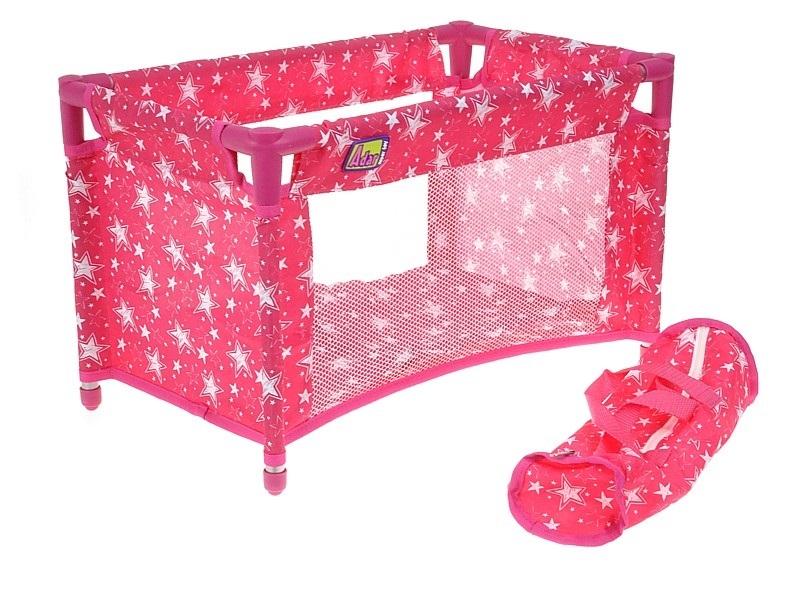 Łóżeczko dla lalek z pościelą składane w podręczną torbę, 53x32x30cm; 32x10x9,5cm