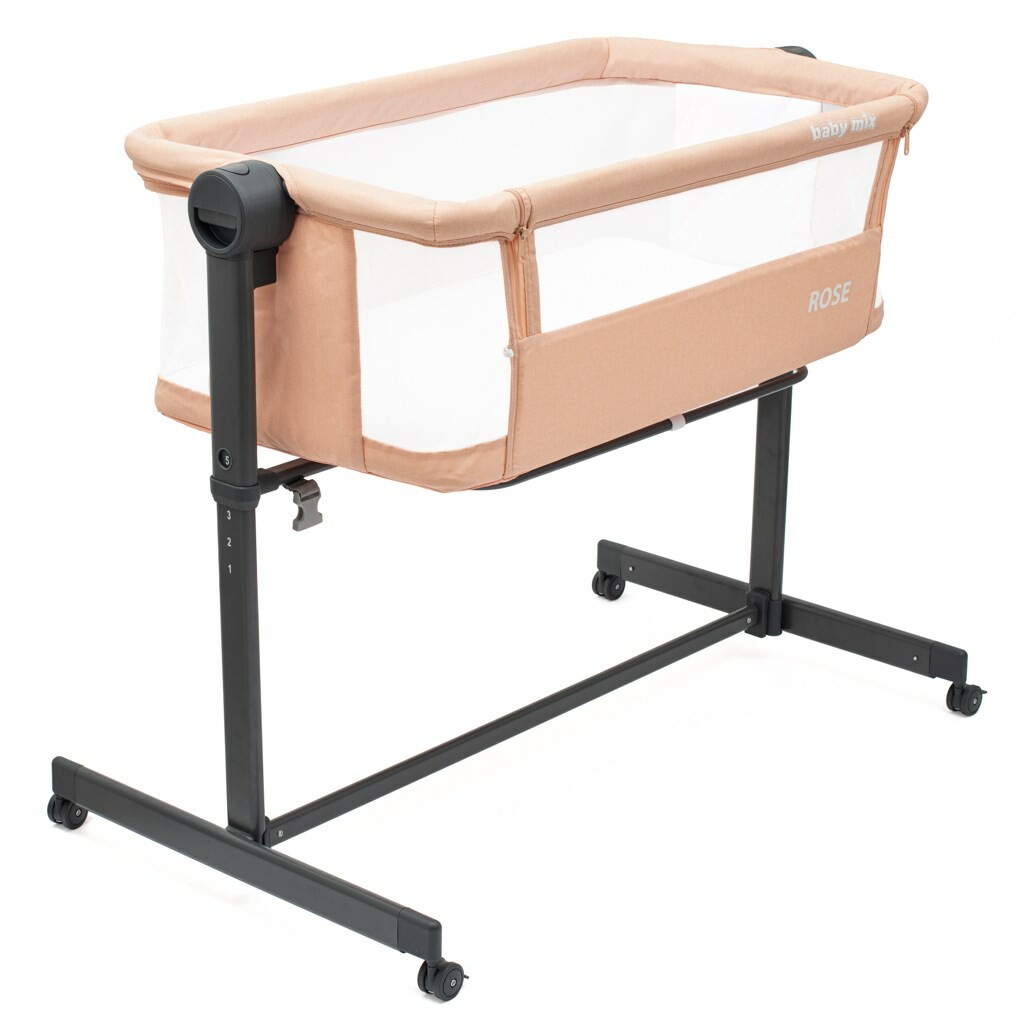 Łóżeczko dostawne Baby Mix Rose zapewni bezpieczeństwo Twojego maluszka podczas snu. Łóżeczko Rose ma 5 poziomów regulacji wysokości (68-80 cm), dzięki czemu można je łatwo dopasować do wysokości łóżka rodziców. Zamki błyskawiczne na łóżeczku znajdują się po zewnętrznej stronie, co zapewnia wygodny dostęp dla rodziców. Łóżeczko jest wyposażone w ciche kółka z hamulcem, które umożliwiają łatwe przemieszczanie, a montaż bez użycia narzędzi gwarantuje szybkie i proste złożenie. W zestawie znajduje się wygodny materacyk do łóżeczka. Łóżeczko Rose posiada solidną i bezpieczną ramę ze stali. 300D poliester, z którego wykonano łóżeczko, jest wytrzymały i lekki. Specyfikacja: - Wysokość łóżeczka: 68-80 cm - Wysokość od materaca do górnej krawędzi: 31 cm - Długość łóżeczka: 84 cm - Szerokość łóżeczka: 52 cm - Materiał: 100% poliester 300D