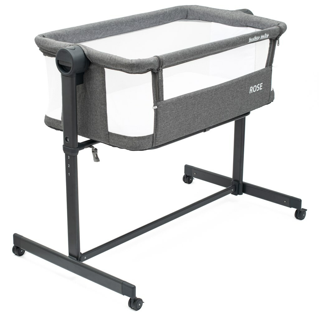 Łóżeczko dostawne Baby Mix Rose zapewni bezpieczeństwo Twojego maluszka podczas snu. Łóżeczko Rose ma 5 poziomów regulacji wysokości (68-80 cm), dzięki czemu można je łatwo dopasować do wysokości łóżka rodziców. Zamki błyskawiczne na łóżeczku znajdują się po zewnętrznej stronie, co zapewnia wygodny dostęp dla rodziców. Łóżeczko jest wyposażone w ciche kółka z hamulcem, które umożliwiają łatwe przemieszczanie, a montaż bez użycia narzędzi gwarantuje szybkie i proste złożenie. W zestawie znajduje się wygodny materacyk do łóżeczka. Łóżeczko Rose posiada solidną i bezpieczną ramę ze stali. 300D poliester, z którego wykonano łóżeczko, jest wytrzymały i lekki. Specyfikacja: - Wysokość łóżeczka: 68-80 cm - Wysokość od materaca do górnej krawędzi: 31 cm - Długość łóżeczka: 84 cm - Szerokość łóżeczka: 52 cm - Materiał: 100% poliester 300D