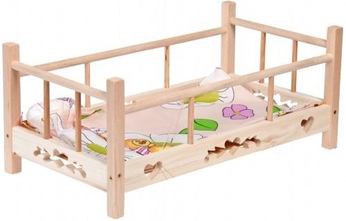 Łóżeczko drewniane dla lalki z pościelą