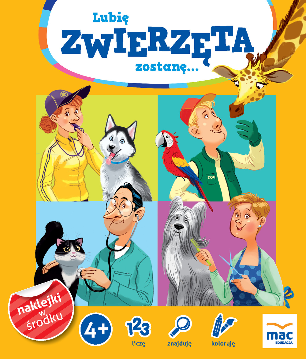 Pasja dziecka stanowi punkt wyjścia do przedstawienia kilku profesji, które w bezpośredni sposób łączą się z ową pasją. W pierwszej części pt. „Lubię zwierzęta, zostanę…” jest to miłość do zwierząt. Dzieci poznają zawód weterynarza, tresera, opiekuna zwierząt i zwierzęcego fryzjera i dowiedzą się, że zawodów, w których może odnaleźć się wielbiciel zwierząt, jest wiele. Książka zbudowana jest z zabaw edukacyjnych, które rozwijają zdolności dziecka na różnych polach - dzięki nim mali czytelnicy bliżej poznają najbardziej popularne zawody. Drugim ważnym elementem są ciekawostki i informacje, podane w bardzo prosty i przystępny sposób.