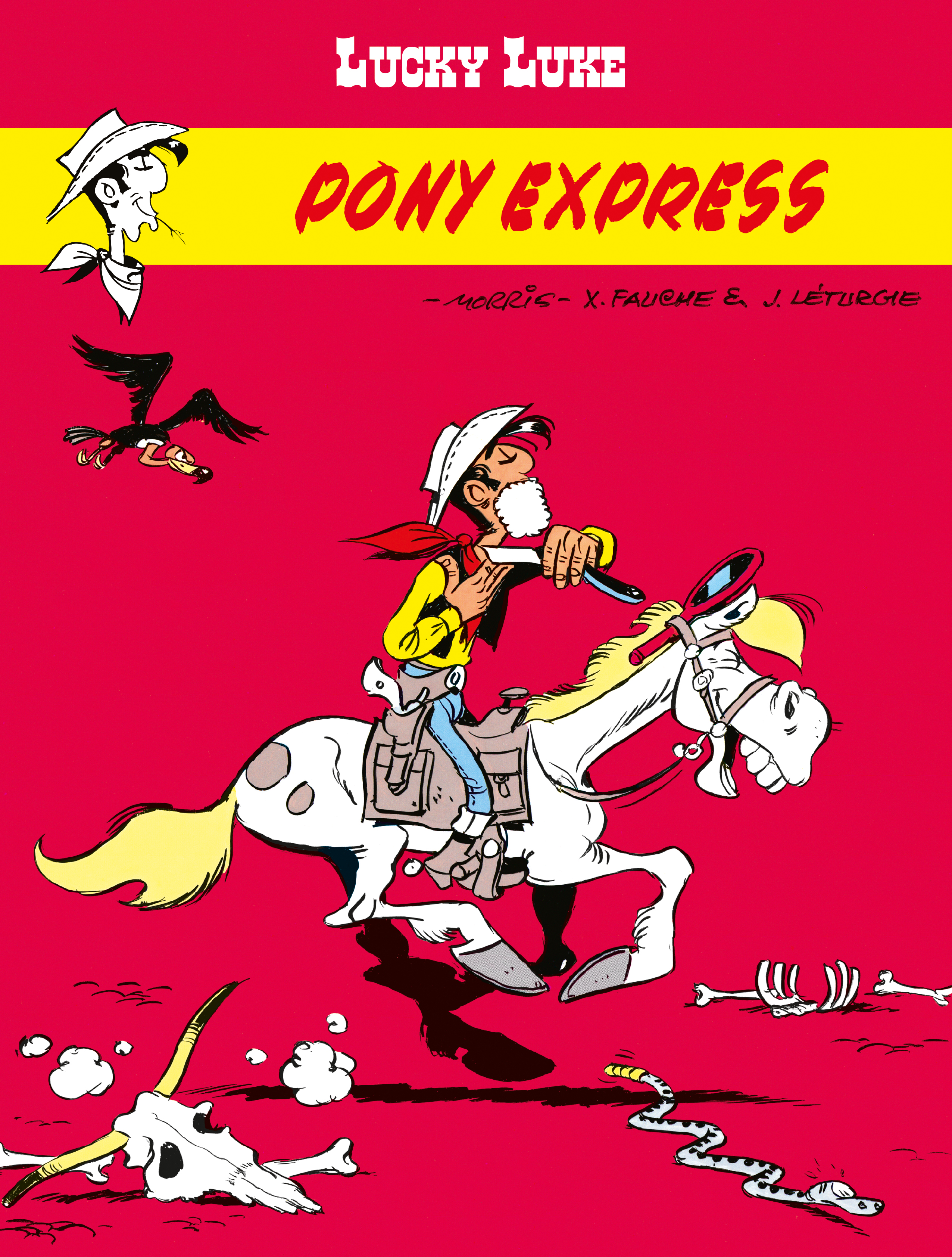 Rząd USA wyznacza wielką nagrodę za wymyślenie sposobu na jak najszybsze przewożenie poczty przez Góry Skaliste do Kalifornii. Przedsiębiorczy William Russel zakłada konną firmę kurierską Pony Express, by dostarczać przesyłki trzy razy szybciej, niż robią to dyliżansy. Na przeszkodzie jego zamiarom stoją nie tylko góry i niebezpieczeństwa, ale też sabotażyści z kompanii Pacific Railway, która chce zbudować linię kolejową do Kalifornii. Russel prosi o pomoc legendę Dzikiego Zachodu, Lucky Luke’a. Czy Samotny Kowboj podoła zadaniu? Seria Lucky Luke została stworzona przez dwie legendy frankofońskiego rynku komiksowego: pisarza René Goscinnego (1926–1977) oraz rysownika Morrisa (własc. Maurice de Bevere, 1923–2001). Po śmierci Goscinnego scenariusze kolejnych odcinków serii były tworzone przez kontynuatorów takich jak duet autorski Xavier Fauche i Jean Léturgie (Bzik, Percevan).