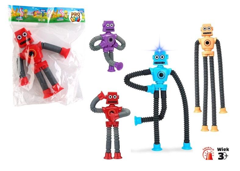 Ta sympatyczna figurka robota nie tylko przyciąga uwagę swoim kolorowym wyglądem, ale także zapewnia godziny zabawy dzięki swoim rozciągliwym ruchom i wbudowanemu światłu.