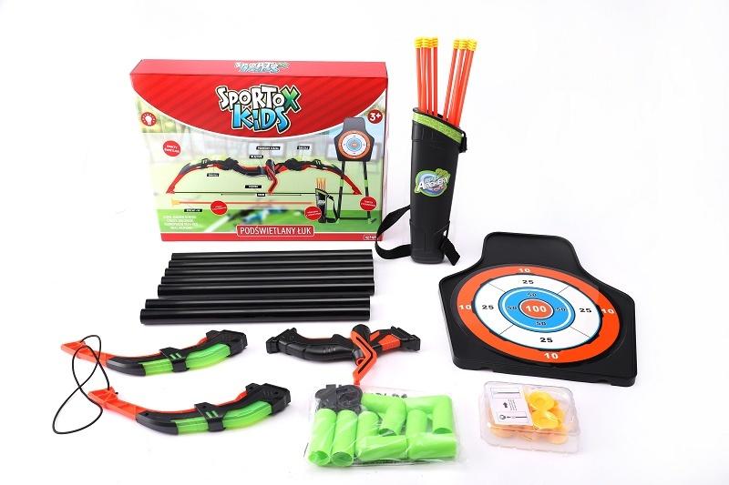 W zestawie: łuk o długości 65 cm, tarcza 33 x 39,5 cm, 10 strzał, kołczan z uchwytem, funkcje: podświetlany łuk, wym. tarczy po rozłożeniu: 45 x 100 x 42 cm, wym. opakowania: 43 x 33,5 x 8 cm, 3+
