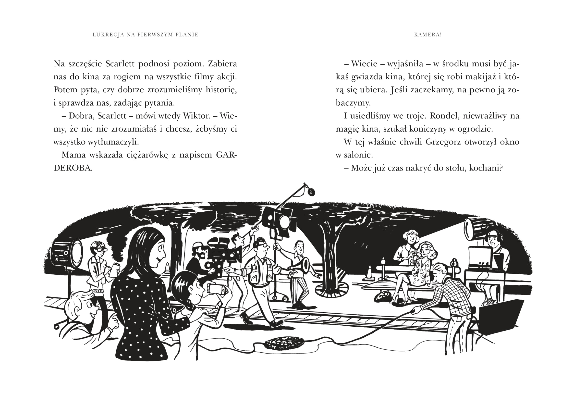 Dorastanie to nie przelewki. Spójrzcie tylko na mój pokój. Jest zdecydowanie zbyt dziecinny, ale jak przekonać mamę, że remont i nowe meble są mi absolutnie niezbędne? Dorośli czasem naprawdę nic nie rozumieją. Mój ojczym na przykład się denerwuje, że nasza ulica jest zablokowana, bo akurat kręcą tam film. A przecież to jest strasznie ciekawe! Pełno znanych aktorek i przystojnych aktorów! W dodatku jeden z nich to podobno stary znajomy… mojej babci. Oczywiście, ona zawsze musi być w centrum uwagi. Ale coś mi mówi, że tym razem będzie inaczej… Anne Goscinny – w dzieciństwie spędzała czas z Mikołajkiem i innymi chłopięcymi bohaterami, ale już w głębi duszy marzyła o świecie Lukrecji! Powyższy opis pochodzi od wydawcy.