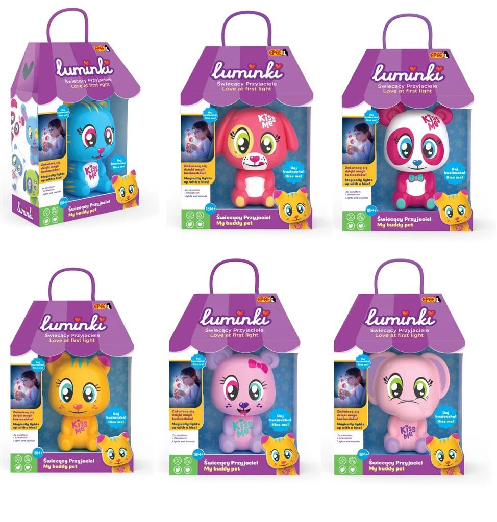 Luminki Świecący Przyjaciele to przyjaciele do zabawy za dnia i strażnicy snów w nocy. W asortymencie aż 6 przesłodkich zwierzaczków, które emitują delikatne światło i wydają słodkie dźwięki! Luminka uruchamia sam dźwięk cmoknięcia.