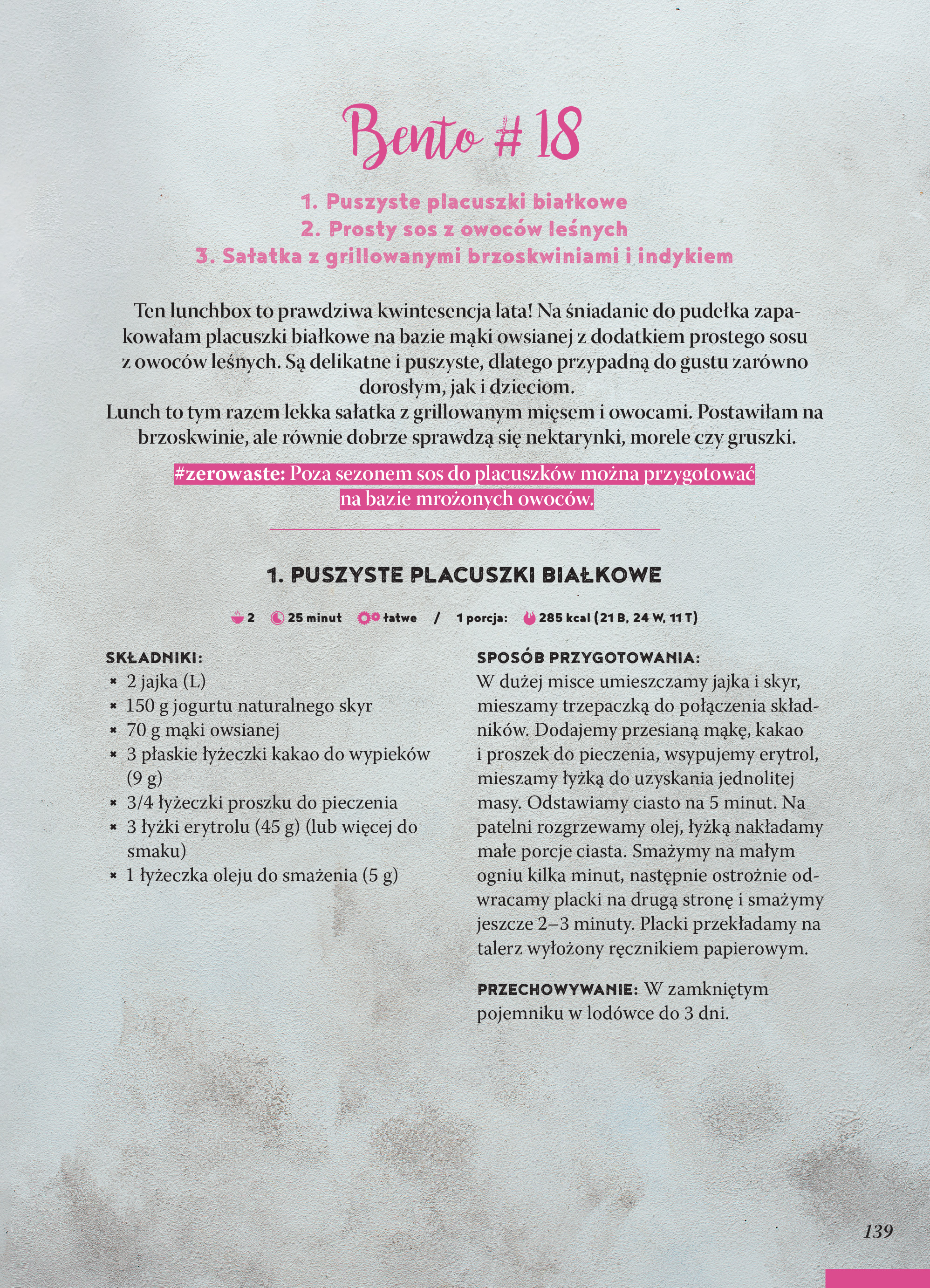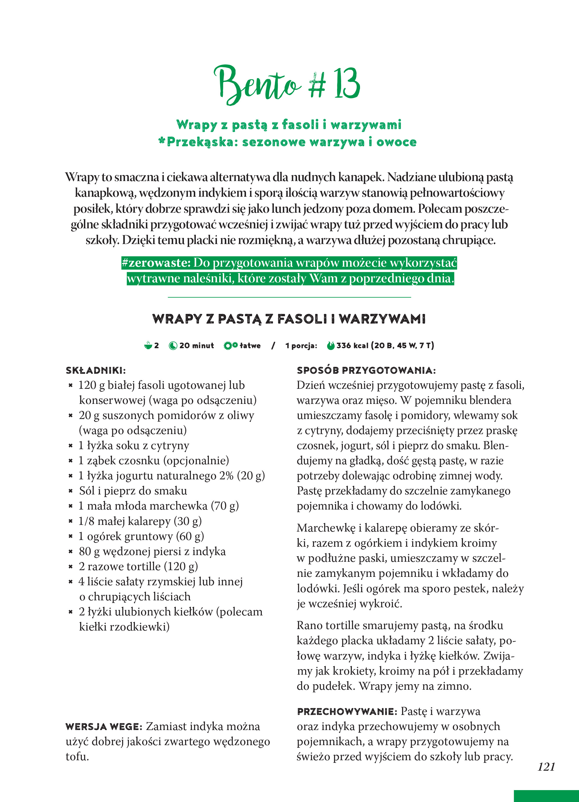 Malwina Bareła przedstawia nowe 130 przepisów na zbilansowane posiłki do lunchboxa. Nie musicie zawracać sobie głowy liczeniem kalorii każdy przepis zawiera sprawdzoną informację o wartościach odżywczych. Co więcej, przepisy mają wegetariańskie zamienniki, dla tych z Was, którzy nie jedzą mięsa. Całość wzbogacona została o ideę zero waste, tak by zminimalizować wyrzucanie jedzenia i oszczędzać pieniądze.