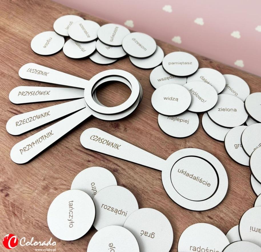 Dzięki łamigłówce dziecko w formie zabawy uczy się rzeczowników, czasowników, liczebników, przymiotników i przysłówków.