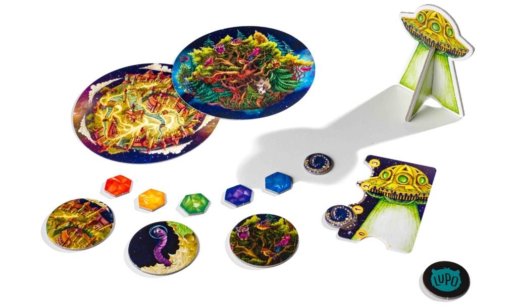 Zestaw dodatków zawiera: UFO – pojazd i karta pojazdu, dzięki któremu wprowadzisz do gry szóstego gracza lub podmienisz jedną z rakiet DWIE PLNETY – Leśna i Miasteczko TRZY ŻETONY – do Leśnej, do Miasteczka, do Robala PIĘĆ PRÓBEK MYŚLI DWA ŻETONY PYŁU