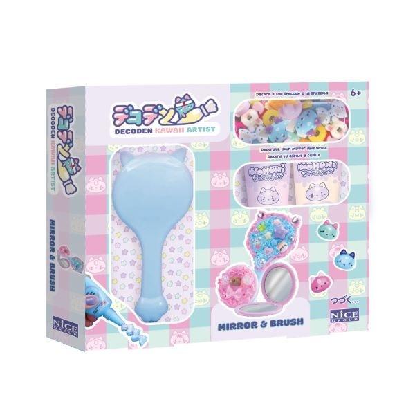 Zostań małą projektantką stylu! Dzięki kreatywnemu zestawowi **NICE Decoden** każde dziecko od 6. roku życia może samodzielnie ozdobić własne akcesoria do pielęgnacji  lusterko i szczotkę. To nie tylko świetna zabawa, ale też okazja, by stworzyć unikatowy komplet, którego nie ma nikt inny!